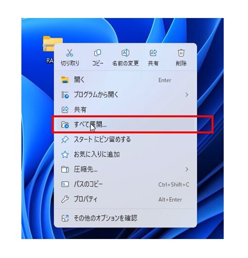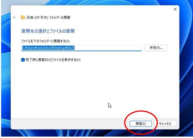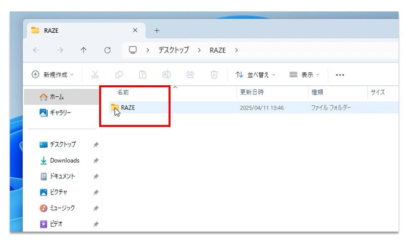 - ダウンロードした「RAZE.zip」ファイルにカーソルを当て右クリック