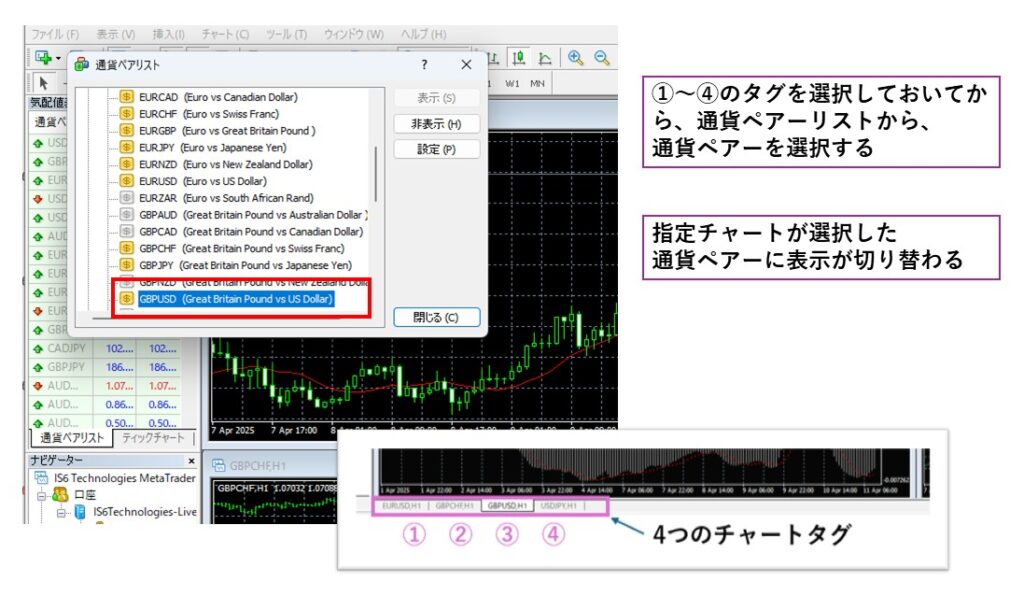 任意の通貨ペア(〇〇.std or mcr)を選択してください。